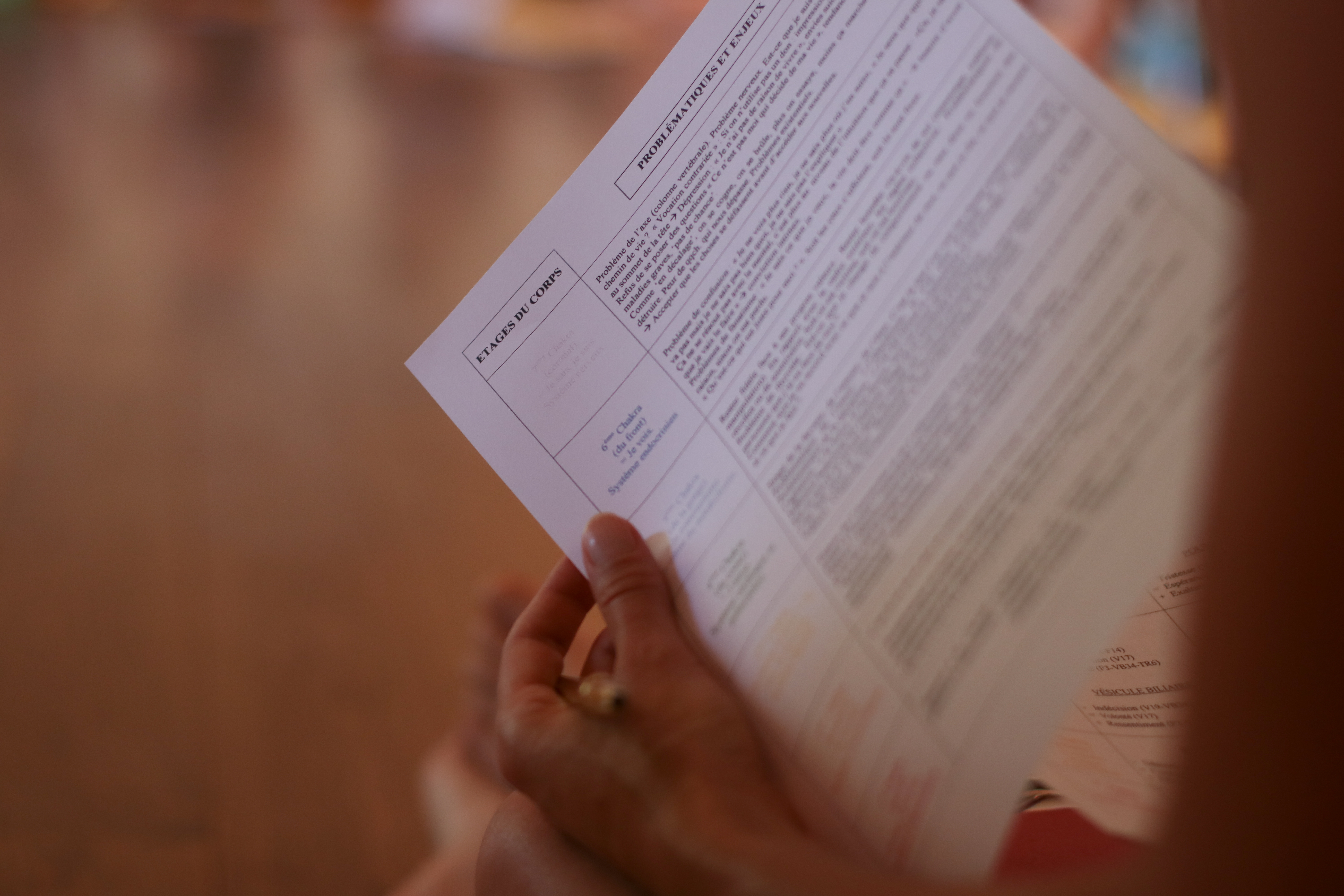 - Vous recevez aussi des fiches d’évaluation de votre pratique en dehors des stages à utiliser pour noter votre ressenti et les résultats de votre pratique sur des personnes que vous massez en dehors des stages. Vous tenez un relevé de ces séances avec le nom, le téléphone et la signature de la personne ainsi que la date de la séance. Vous aurez à fournir ce relevé pour vos attestations et la certification de la formation.
